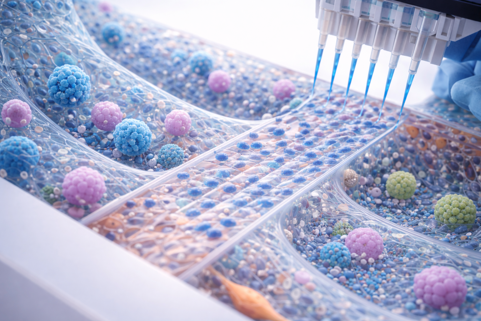 Cells experience defined extracellular environments that mimic in vivo structure while remaining fully compatible with standard culture and imaging workflows.